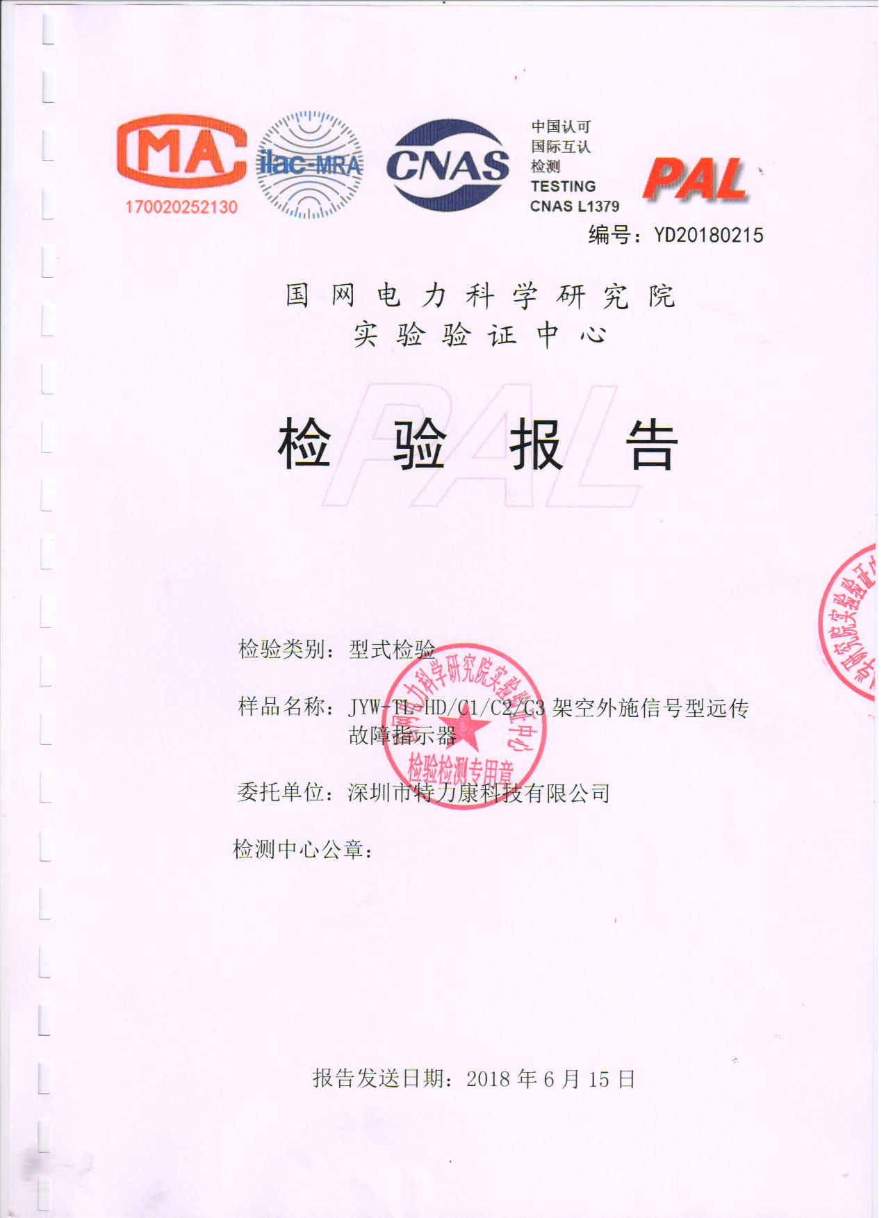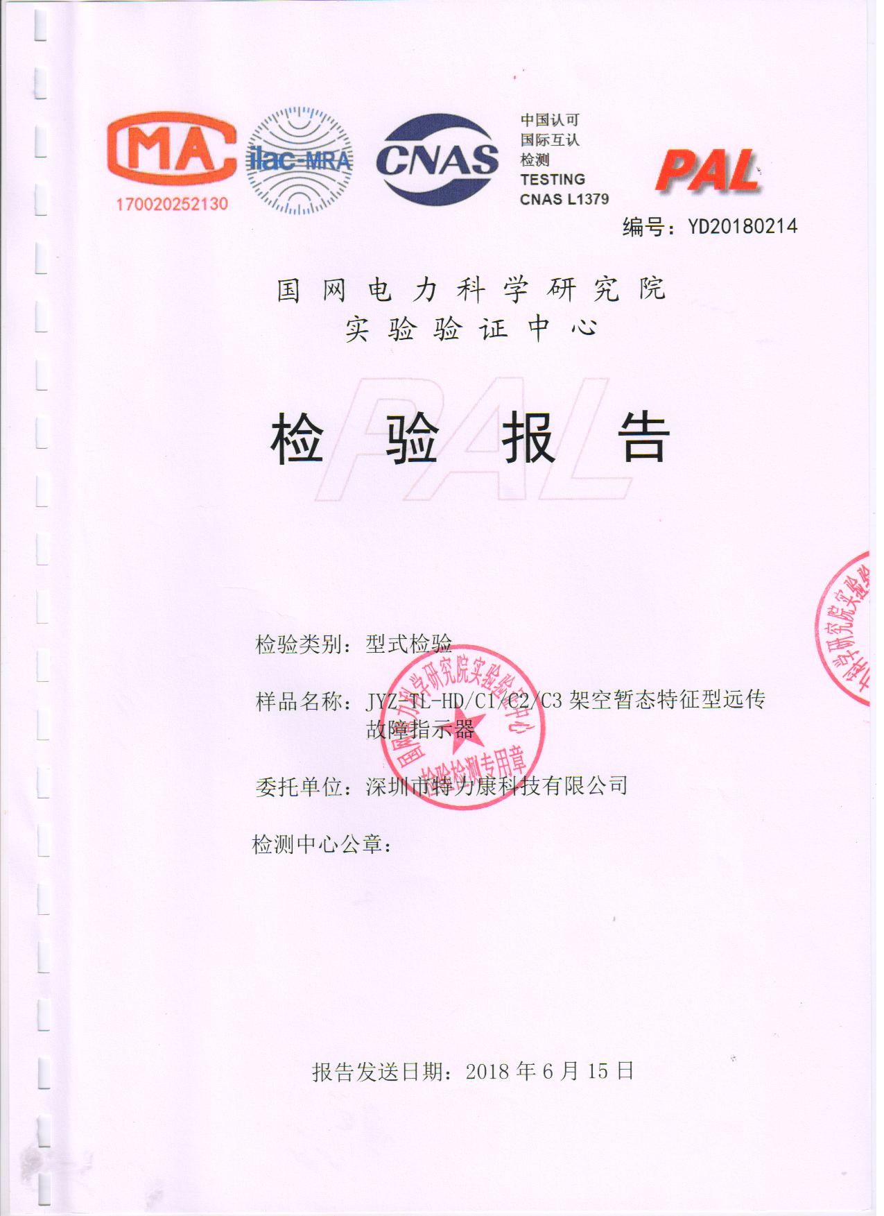 我司專注輸電線路在線監(jiān)測十二年,在智能電網(wǎng)監(jiān)測領(lǐng)域已有了不凡的地位。然而,為了更好的為電力智能化管理做出貢獻(xiàn),我司大力組建研發(fā)團(tuán)隊(duì)致力于配網(wǎng)故障監(jiān)測產(chǎn)品開發(fā),經(jīng)多年研發(fā)與掛網(wǎng)測試,于2018年1月20日,經(jīng)邀請,攜帶我司研發(fā)的架空暫態(tài)特征型、架空信號(hào)遠(yuǎn)傳型故障指示器,前往國家電網(wǎng)電力科學(xué)研究院進(jìn)行抽檢試驗(yàn)及測試。在長達(dá)將近5個(gè)月的各項(xiàng)性能測試后,我司架空暫態(tài)特征型、架空信號(hào)遠(yuǎn)傳型故障指示器的測試結(jié)果均達(dá)到合格。因此,于2018年6月15日國網(wǎng)電力科學(xué)研究院為我司發(fā)放了相關(guān)檢測報(bào)告證明文件(型式檢測報(bào)告)。