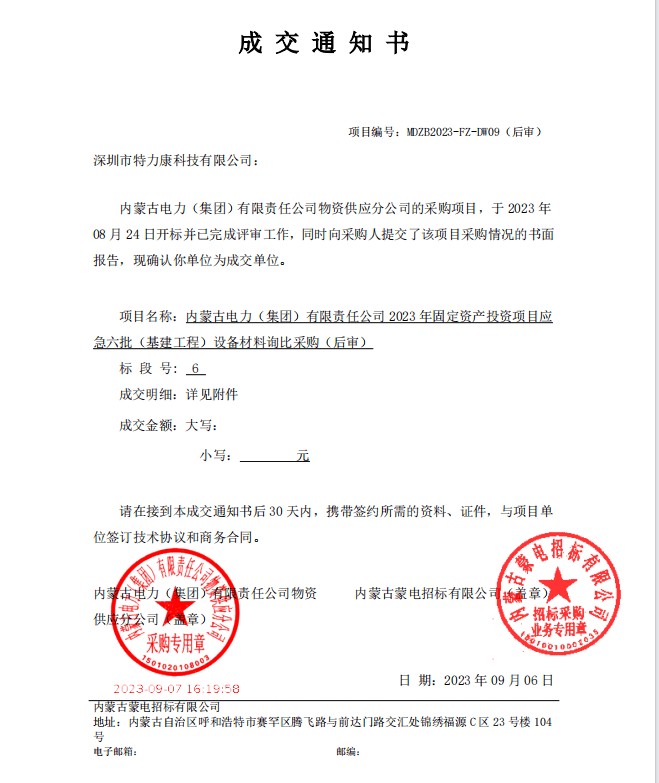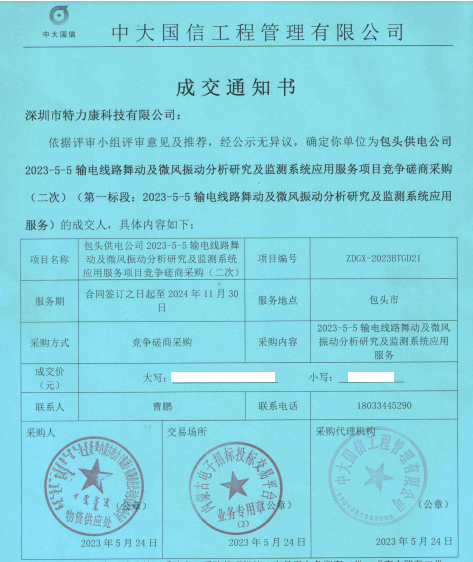 特力康中標國網黑龍江送變電工程公司的2024年度第18次物資類競爭性談判采購項目——慶陽驅鳥器物資框 特力康中標國網甘肅省電力公司省管產業單位2024年第五次物資競爭性談判授權采購項目 中標喜訊:深圳市特力康科技有限公司成功入圍許繼集團綜合能源公司輸電線路視頻在線監測裝置模塊集采項目 中標喜訊:特力康成功中標國網重慶市電力公司渝中一片區項目 特力康成功中標國網天津市電力公司2024年第二次?物?資招標項目 特力康中標國網安徽省電力有限公司蕪湖供電公司2024年3月非物質采購項目 特力康輸電線路智能AI多目監控裝置+傾斜監測守護山西輸電生命線 鄂網“全景眼”:特力康一體化視頻監控系統守護輸電線路 山東電網 “穩塔哨兵”:特力康智能桿塔傾斜監測預警裝置筑牢電力桿塔安全防線 特力康科技輸電線路高清圖像監控裝置,為河南輸電通道筑牢安全屏障 黃土高原護塔穩:特力康傾斜監測裝置為山西電網筑牢根基 黔山冰防線:特力康 “數據 + 圖像” 雙監測守護貴州輸電線路 戈壁林區的 “火情哨兵”:特力康紅外熱成像裝置守護甘肅輸電線路 內蒙電網裝上 “舞動監測眼”:特力康輸電線路防舞動監測系統守護線路安全 寧夏配電線路安裝了我司防外破電子化智能警示牌