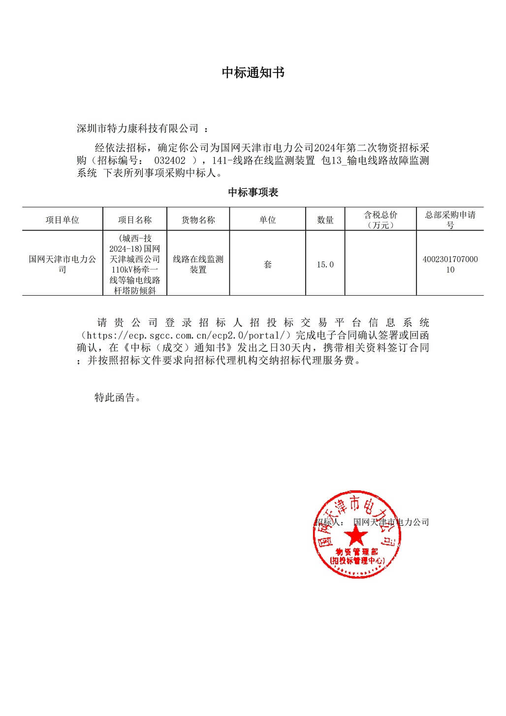 特力康中標國網黑龍江送變電工程公司的2024年度第18次物資類競爭性談判采購項目——慶陽驅鳥器物資框 特力康中標國網甘肅省電力公司省管產業單位2024年第五次物資競爭性談判授權采購項目 中標喜訊:深圳市特力康科技有限公司成功入圍許繼集團綜合能源公司輸電線路視頻在線監測裝置模塊集采項目 中標喜訊:特力康成功中標國網重慶市電力公司渝中一片區項目 特力康成功中標國網天津市電力公司2024年第二次?物?資招標項目 特力康中標國網安徽省電力有限公司蕪湖供電公司2024年3月非物質采購項目 鄂網“全景眼”:特力康一體化視頻監控系統守護輸電線路 山東電網 “穩塔哨兵”:特力康智能桿塔傾斜監測預警裝置筑牢電力桿塔安全防線 特力康科技輸電線路高清圖像監控裝置,為河南輸電通道筑牢安全屏障 黃土高原護塔穩:特力康傾斜監測裝置為山西電網筑牢根基 黔山冰防線:特力康 “數據 + 圖像” 雙監測守護貴州輸電線路 戈壁林區的 “火情哨兵”:特力康紅外熱成像裝置守護甘肅輸電線路 內蒙電網裝上 “舞動監測眼”:特力康輸電線路防舞動監測系統守護線路安全 浙江電力裝上“氣象哨兵”:特力康裝置守護電網應對臺風暴雨 蜀道巡線不用“爬”:特力康視頻在線監測裝置守護四川輸電鐵塔 風雪中的 “防冰哨兵”:內蒙古電力用特力康監測系統筑牢覆冰防線 雙軸感知護塔穩:山西電力用特力康裝置破解采空區傾斜難題 寧夏配電線路安裝了我司防外破電子化智能警示牌